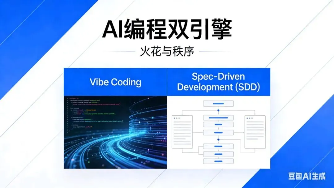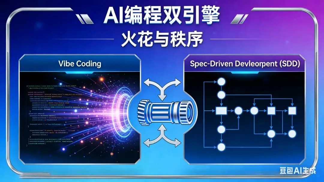 Vibe Coding点燃创意火花,SDD构建工程秩序。现代开发的最优解是让火花驱动探索,让秩序保障交付,按场景组合两者,在效率与质量间找到最佳平衡。