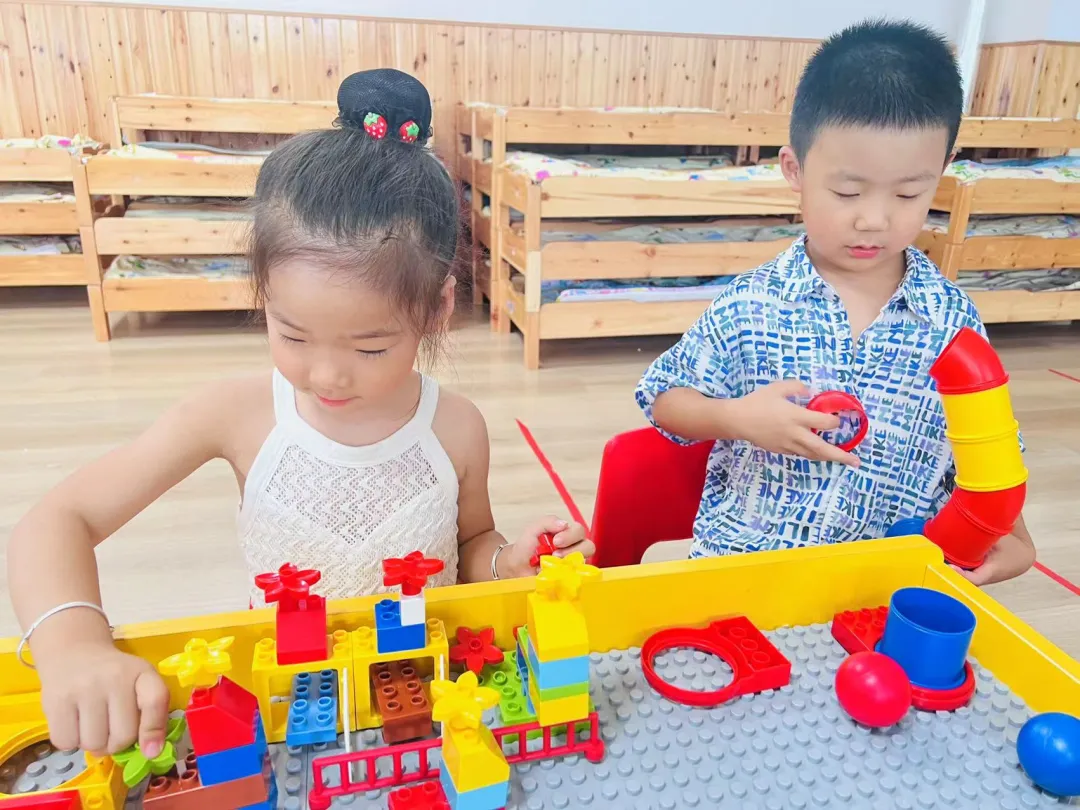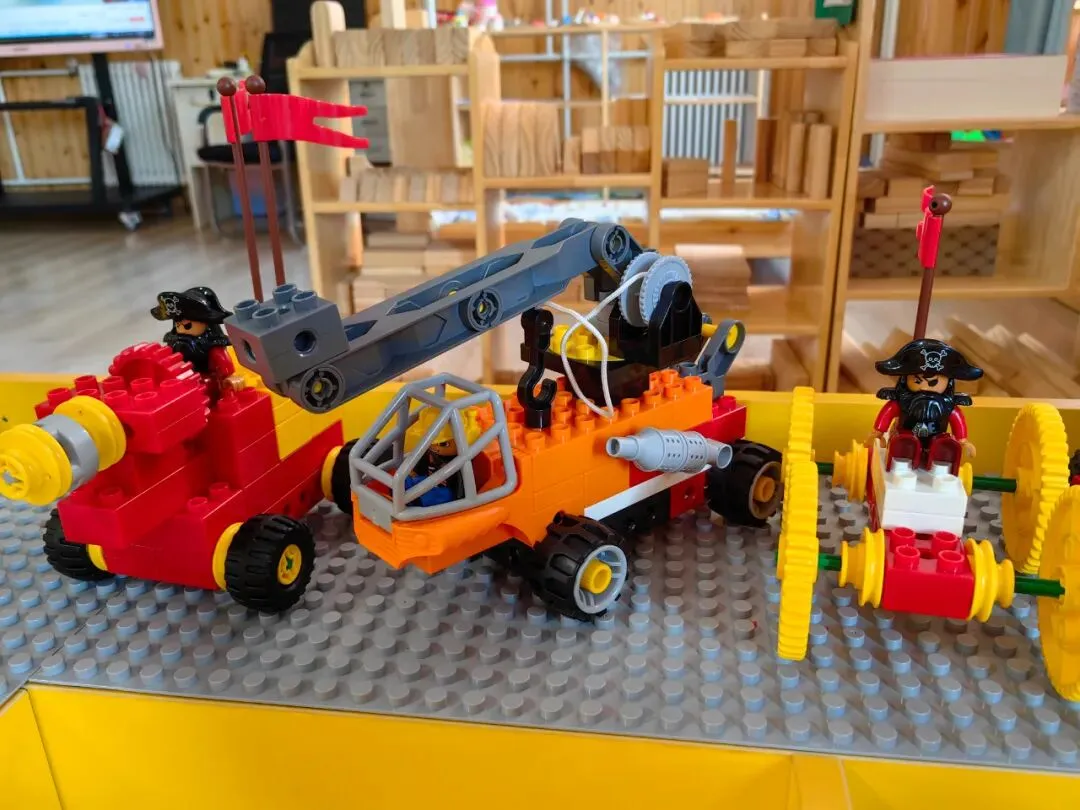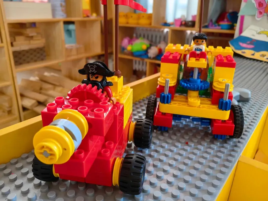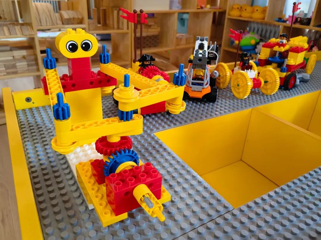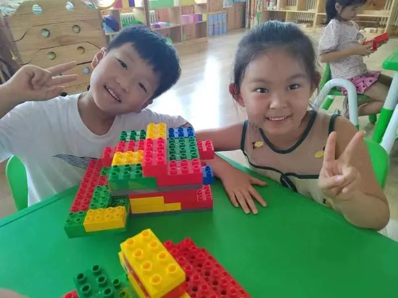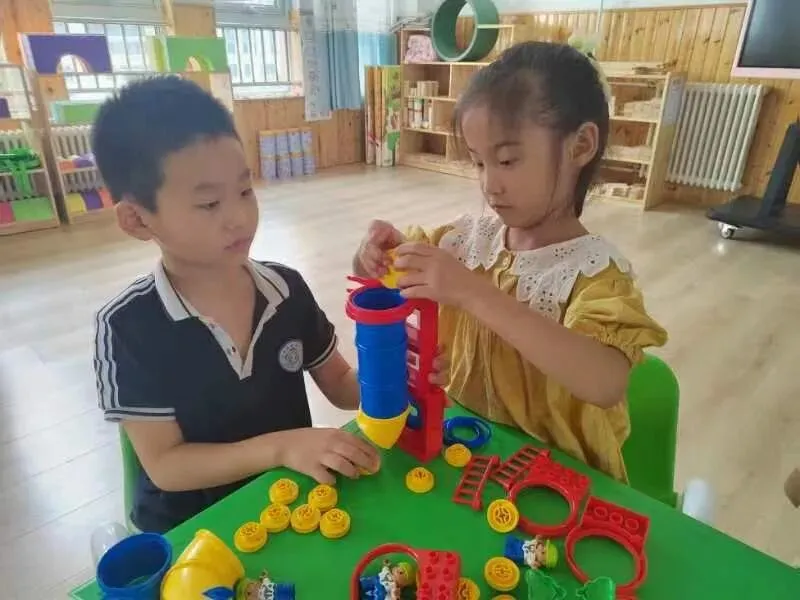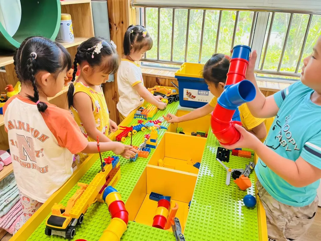 为了满足不同年龄段孩子发展的需要,老师们对乐高玩具进行了分层、分阶段投放。孩子们在活动中自由主动,思绪翻飞,小小的积木变换出各式各样的造型。