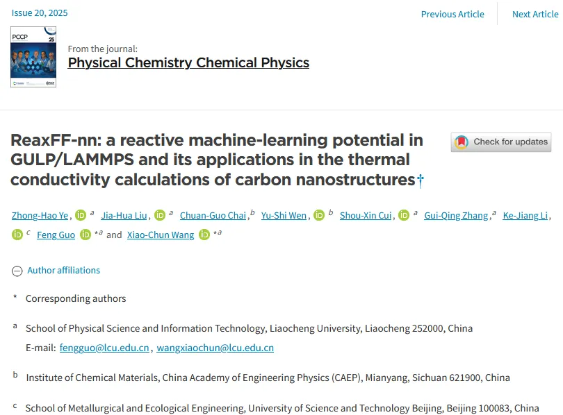 一项发表在 《Physical Chemistry Chemical Physics》 上的研究,巧妙地将机器学习神经网络与经典反应力场相融合,开发出名为 ReaxFF-nn 的机器学习势函数,并成功将其集成到两大主流分子动力学模拟软件 GULP 和 LAMMPS 中。
