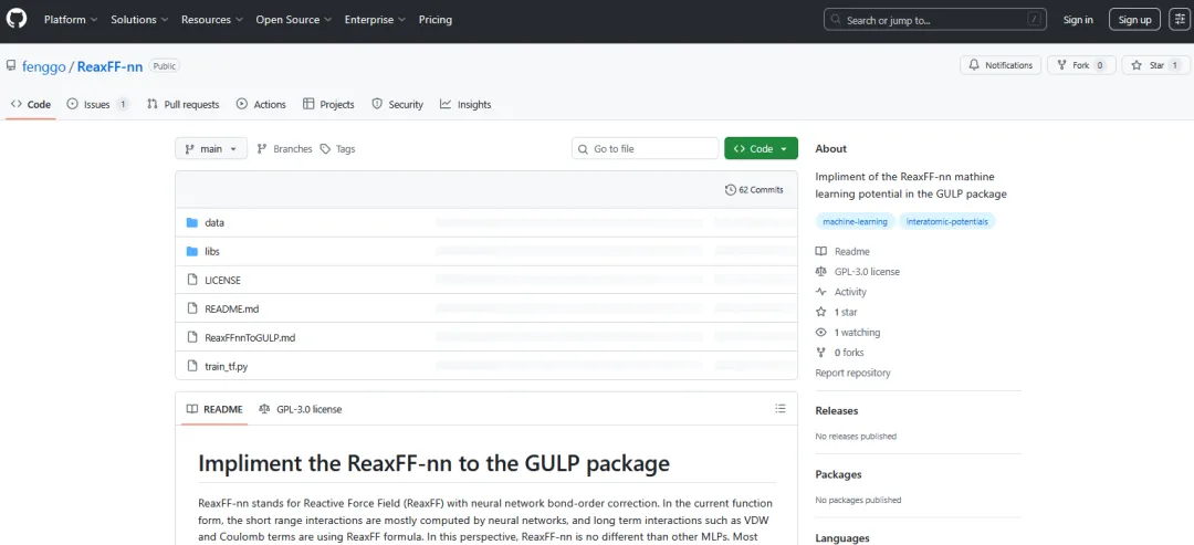 分享一个ReaxFF-nn 代码:基于GULP/LAMMPS平台的反应式机器学习势函数及其在碳纳米结构热导率计算中的应用。感谢论文的原作者!