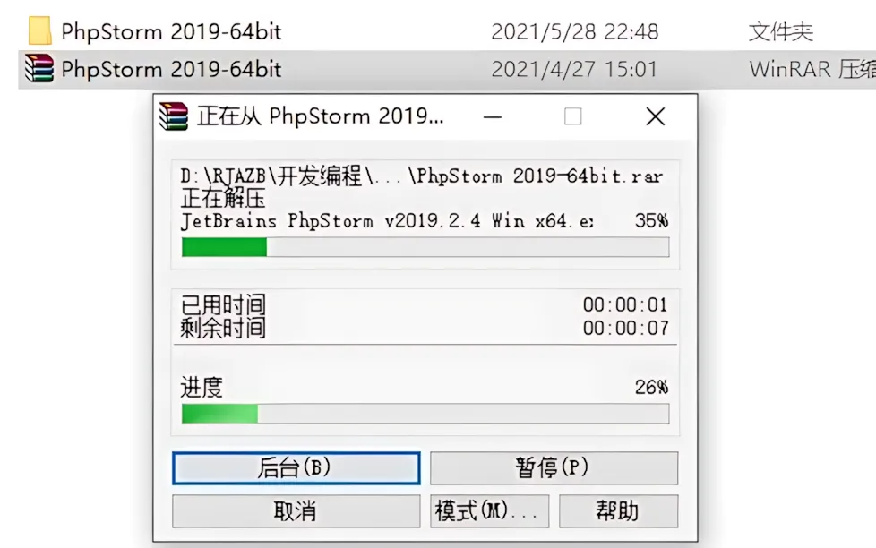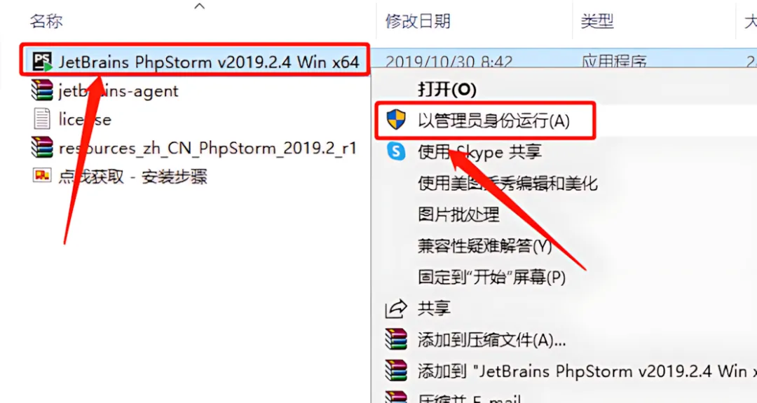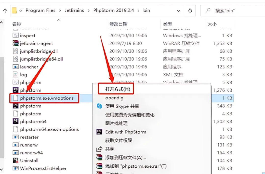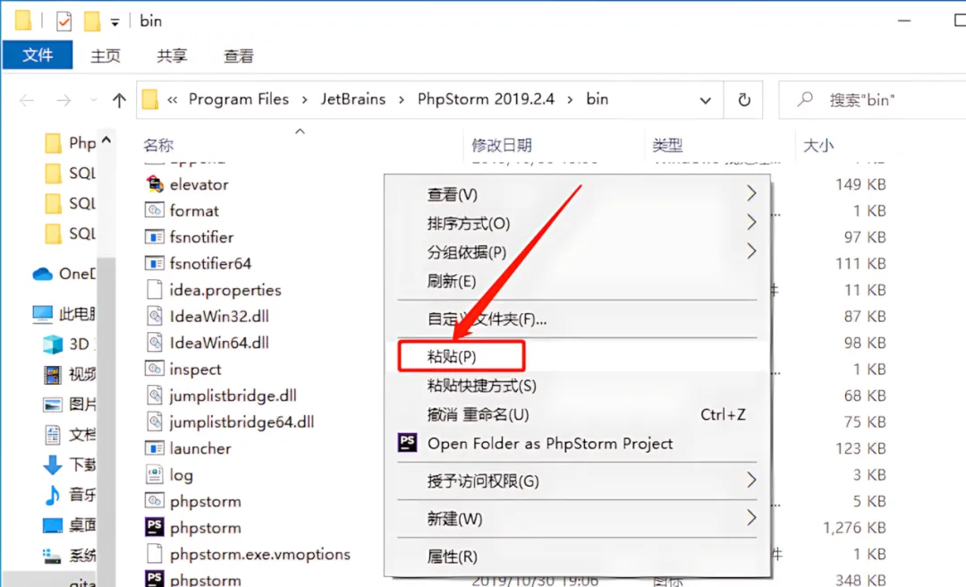 3.打开解压后的文件【PhpStorm 2019 64bit】