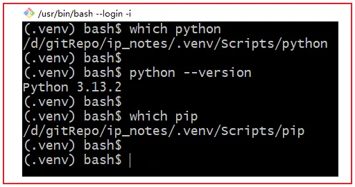 mkdir prj; cd prjmise exec python -- python -m venv .venvsource .venv/Scripts/activate