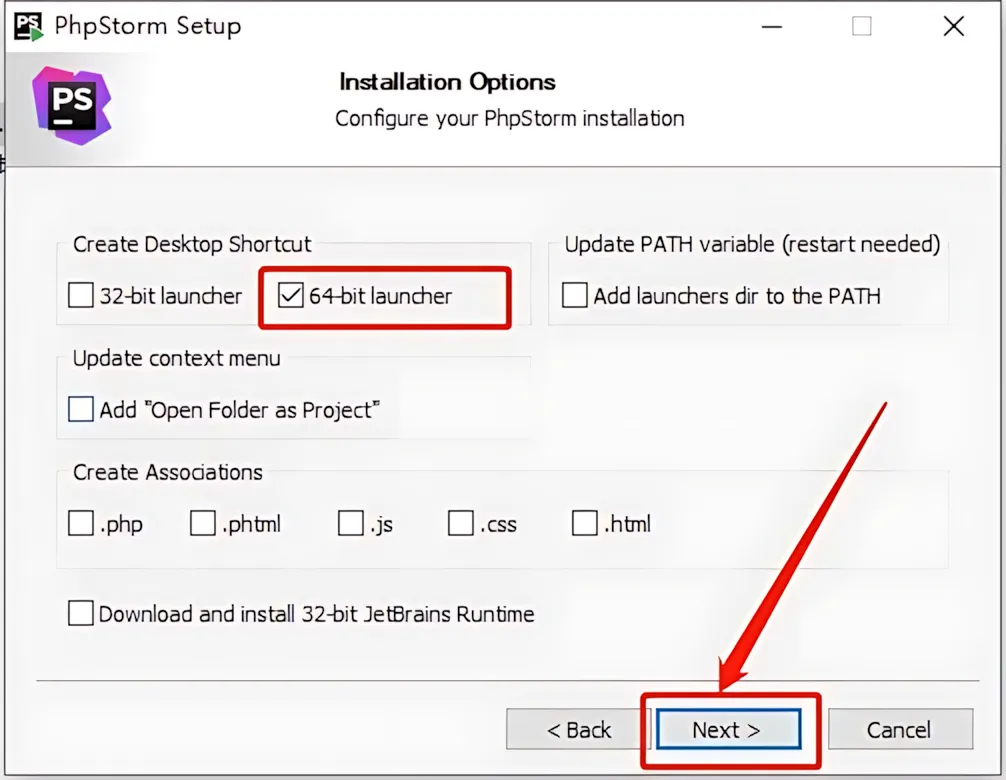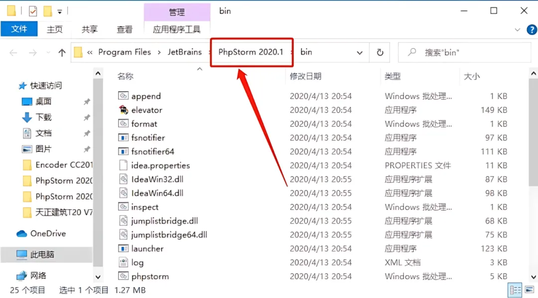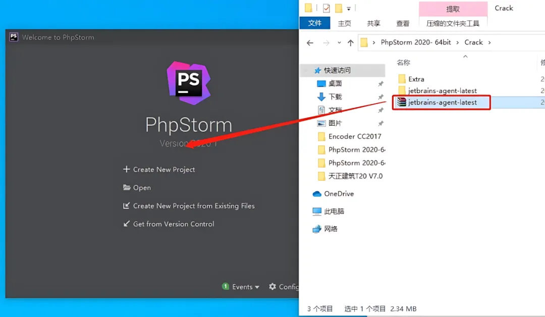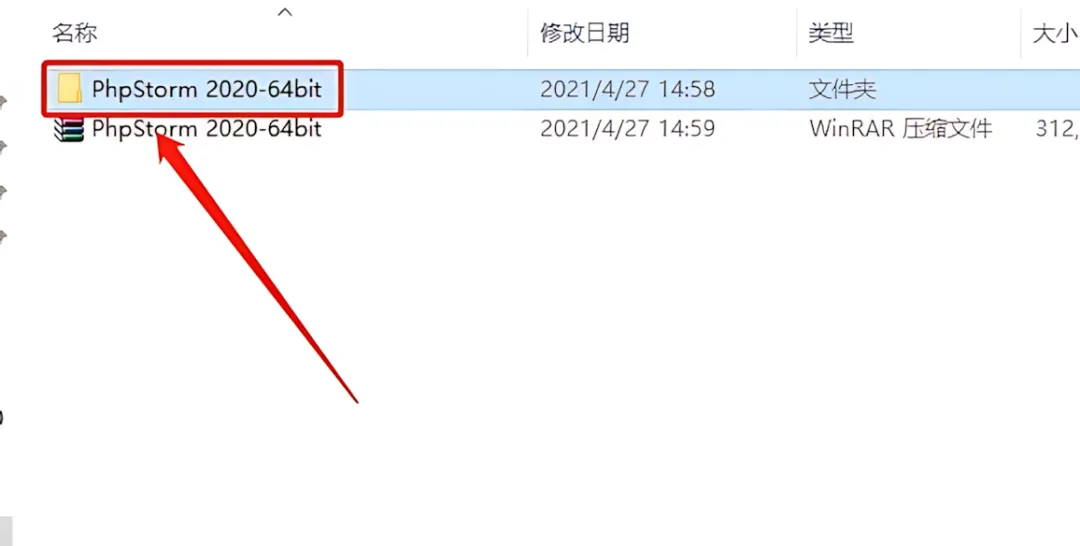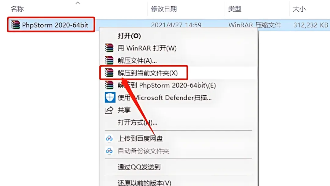 1.鼠标右击【PhpStorm 2020-64bit】压缩包,点击【解压到当前文件夹】。