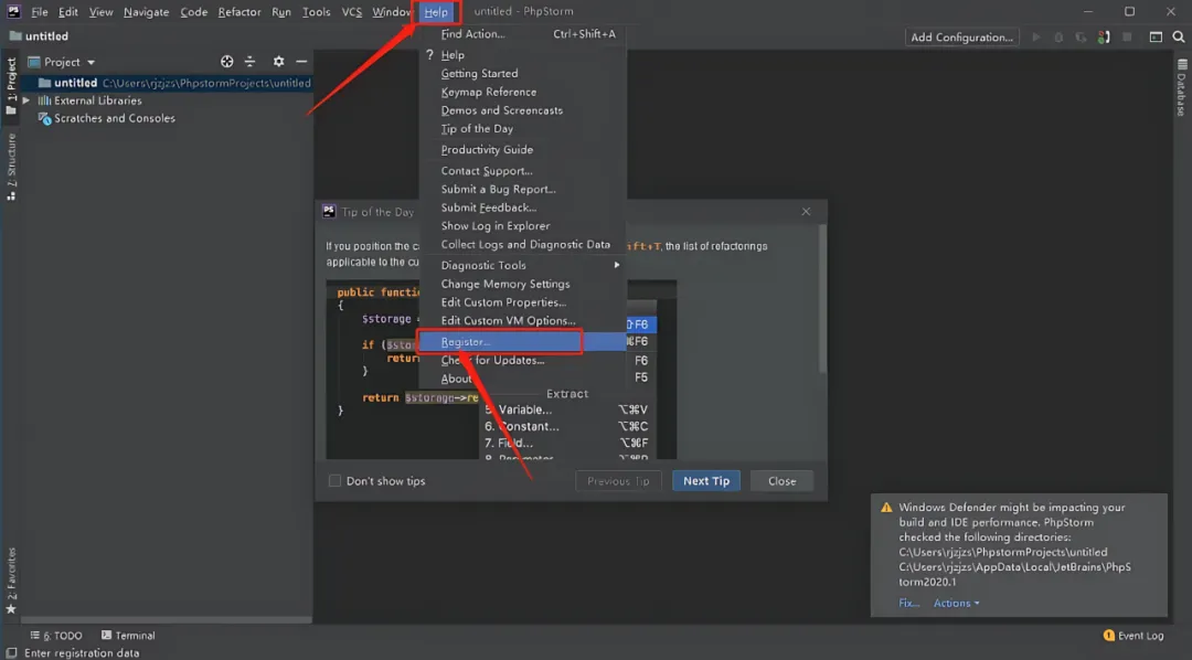 21.按图所示,点击“Help”,然后点击【Registor】。