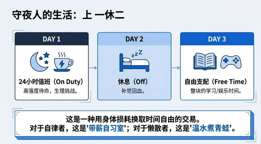 这个岗位的本质是:基于SOP(标准作业程序)的人肉执行器。表象(Gap):职位叫“应用运维”,看似要懂Nginx、Docker底层。技术含量:看看任职要求——cd(切换目录)、ls(查看进程)、tail(看日志)。这是Linux入门第一天的课程。真实工作流:监控报警 -> 登录服务器 -> top看负载 -> tail看报错 -> 截图 -> 发给二线开发/运维专家 -> 听指挥重启或回滚。生活模式:重点关注“上一休二”(通常是上24小时休48小时,或者大夜班模式)。这意味着你有大量的整块业余时间,但对身体素质是考验。