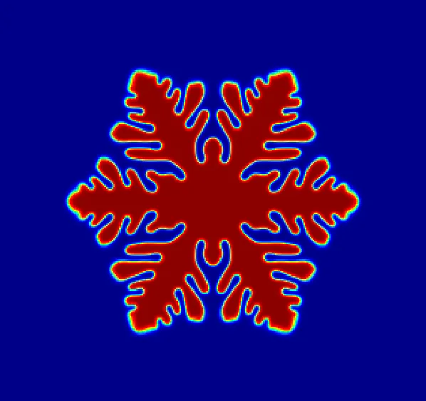 在上一期中,我们尝试用简单的 Allen-Cahn 方程模拟雪花,结果往往只能得到一个有棱角的“胖六边形”,怎么也长不出精细的侧枝 (Side branches)。
