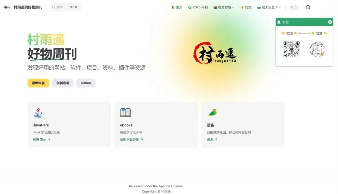 村雨遥的好物周刊,记录每周看到的有价值的信息,主要针对计算机领域,每周五发布。