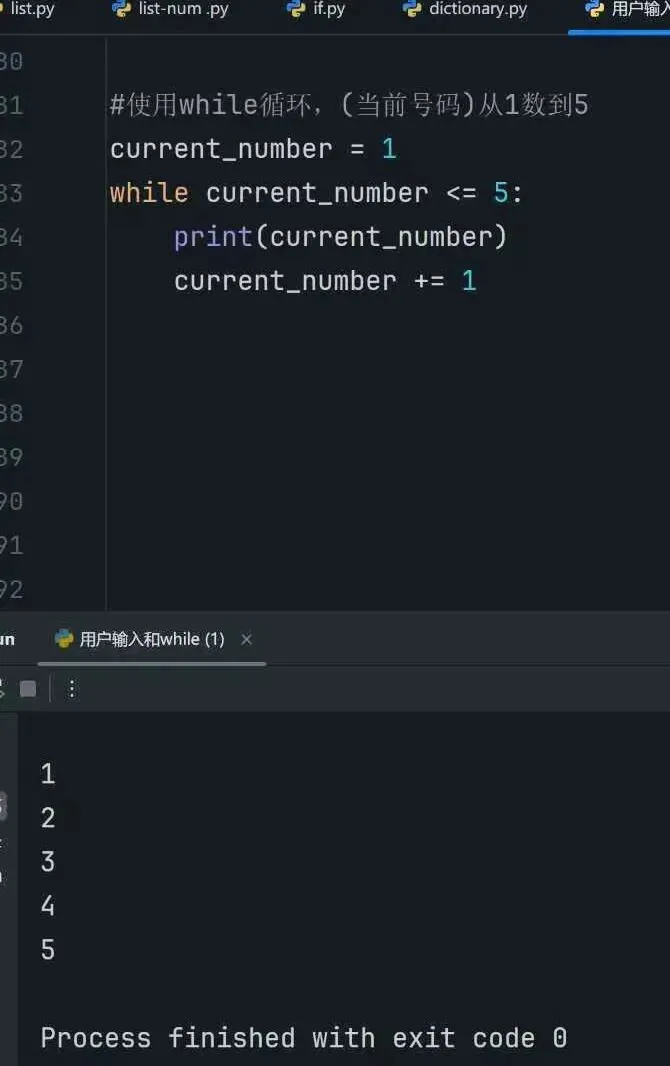 2.设置while循环:只要currend_numbre<=5就接着运行这个循环