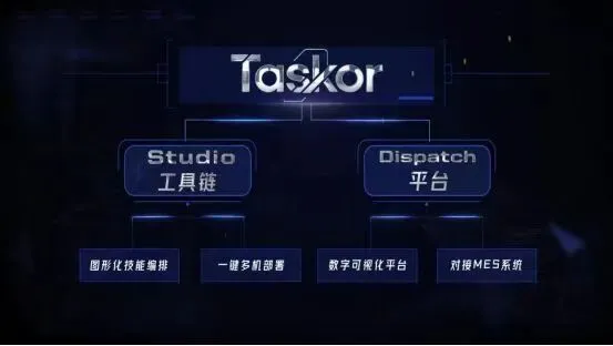 Taskor的核心定位是解决工业人形机器人规模化落地的核心痛点,搭建起“软件定义机器人”的通用化中枢。Taskor平台主要由两大核心模块构成,Studio工具链和Dispatch平台,前者负责“编方案、发指令”,后者负责“管全局、配资源”,两者协同实现从任务编排到落地执行的全流程闭环。