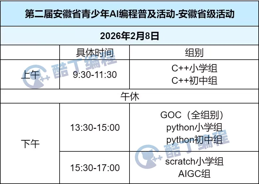 刚刚!第二届安徽省青少年AI编程普及活动-安徽省级活动考试时间和地点确定!