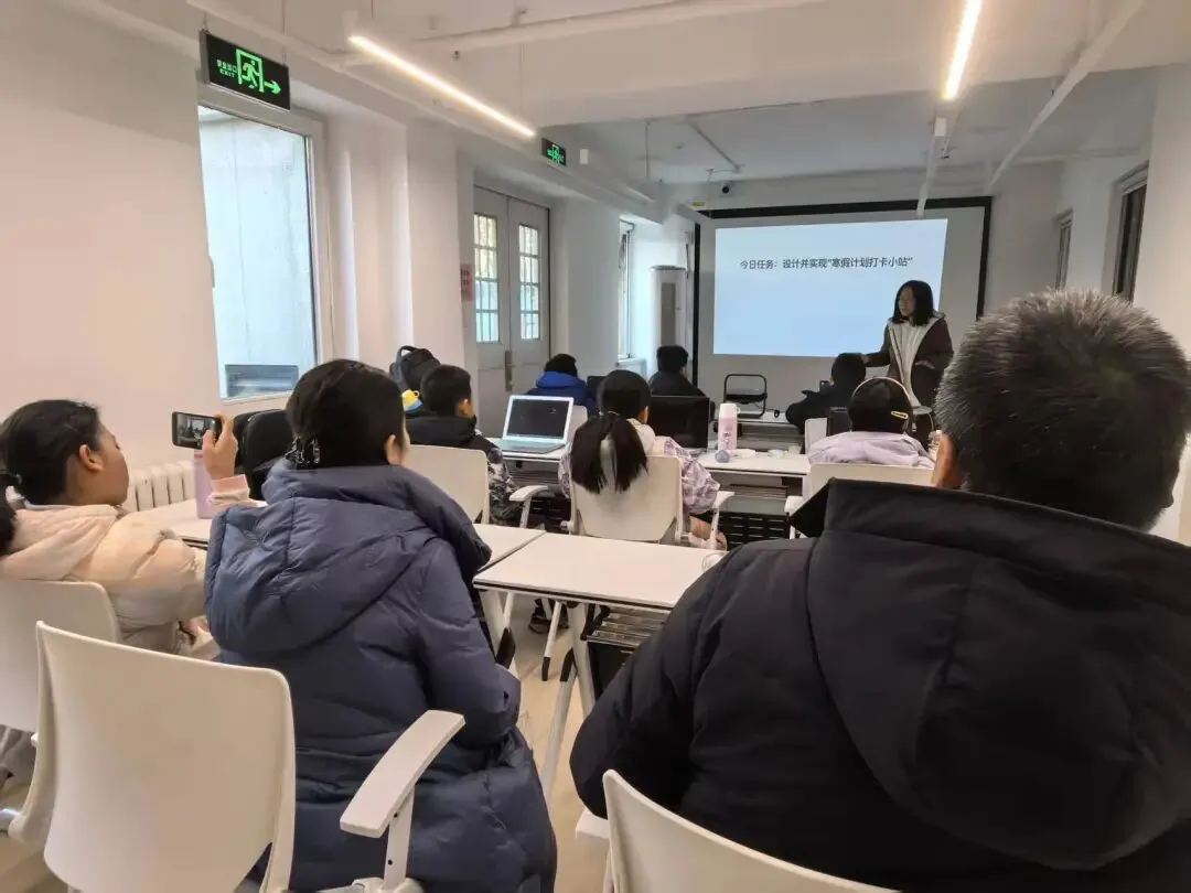 接下来孩子们借助AI编程工具将设计变为现实,根据提示词AI协助生成出个性化的网页:有的充满新年喜庆氛围,有的则是静谧的冬日风格,伴有雪花飘落的动效。孩子们不仅实现了基础功能,更在功能优化环节尽情发挥想象力,有的添加背景音乐、有的设计等级奖章、还有的设计了有趣的鼠标样式。在反复与AI对话、调试修改的过程中,一个兼具计划、打卡、激励功能的“智能寒假计划小站” 在每位孩子手中诞生。