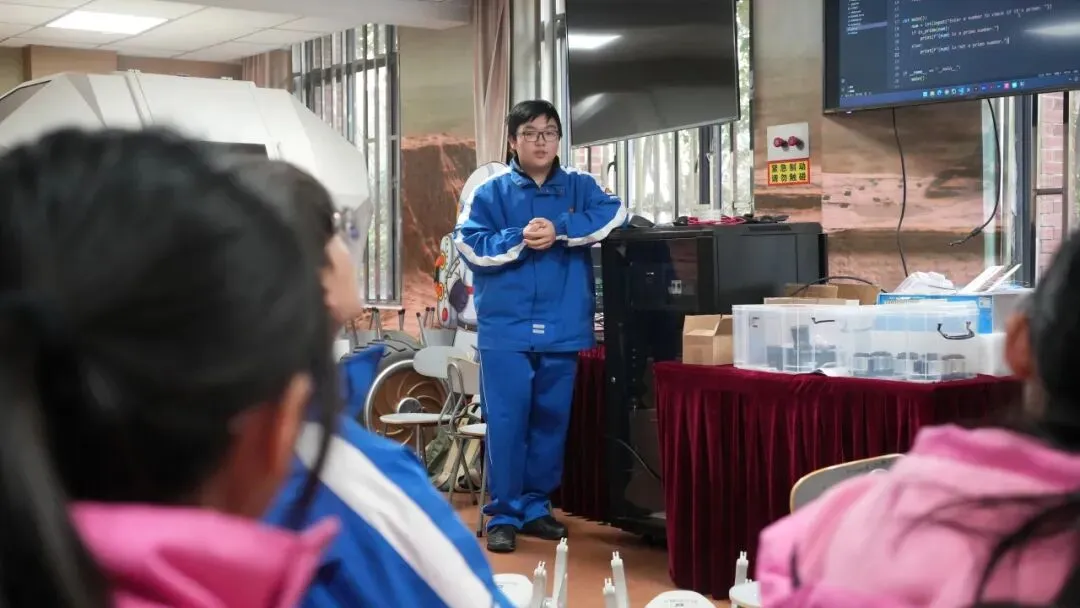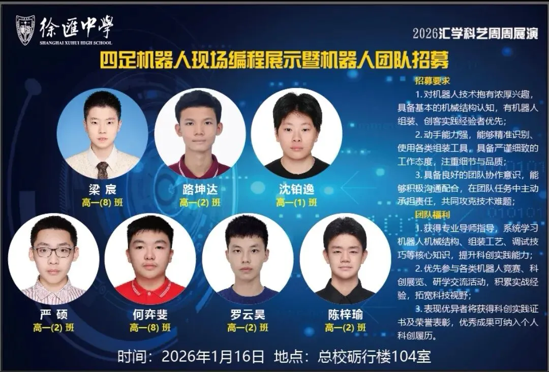 高一(3)班李寅峰:“我全程沉浸在代码驱动机械的魅力中,特别是当机器后空翻报错,大家围在一起协同排查、直到动作稳稳完成的那一刻,那种攻克难题的团队氛围最令我向往。虽然我编程基础尚浅,但我相信凭借动手能力的优势和不服输的劲头,一定能和大家一起做出更酷的作品!”