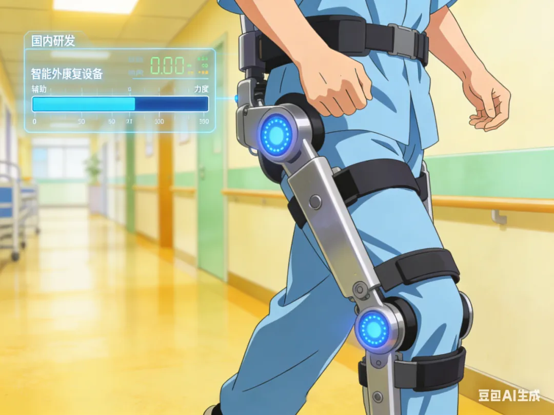 国内研发的具身外骨骼机器人,正帮助中风患者重新学习行走,系统会实时调整辅助力度,促进神经重建。