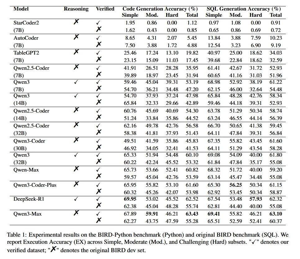✅ 高质量数据集:BIRD-Python 的构建过程严谨,为社区提供了一个宝贵的资源。 | |