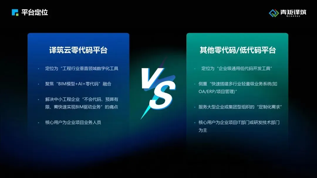 也正因为如此,我们将译筑云定位为工程垂直领域的 AI 三维零代码平台,重点聚焦工程项目的生产管理,而不是泛化的企业管理工具。