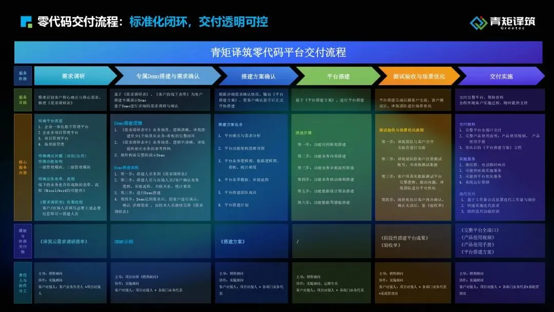 在交付层面,青矩译筑已将需求调研、方案设计、Demo 搭建到正式交付全部标准化。