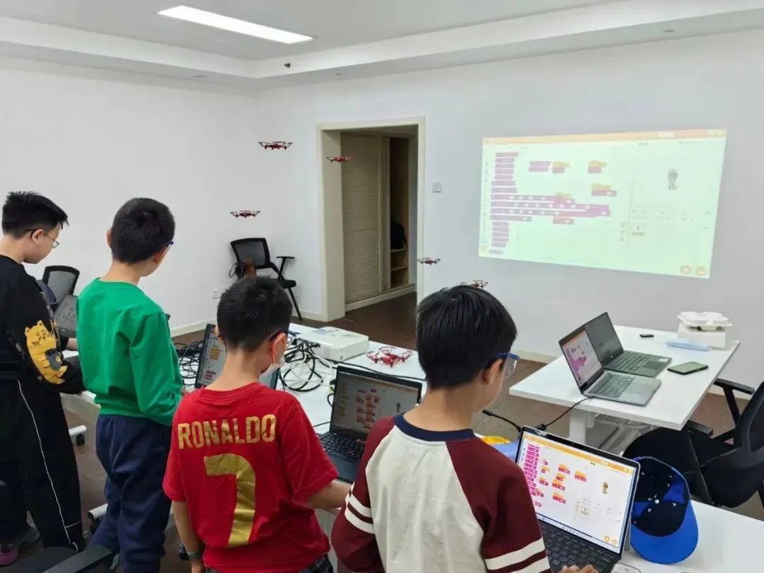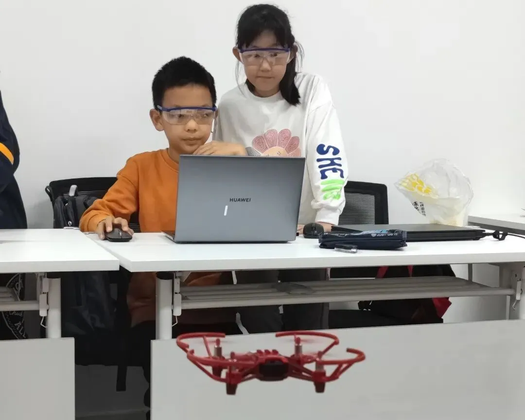 通过模拟无人机在指定区域的精准停机,孩子们的编程技巧和创新设计思维。
