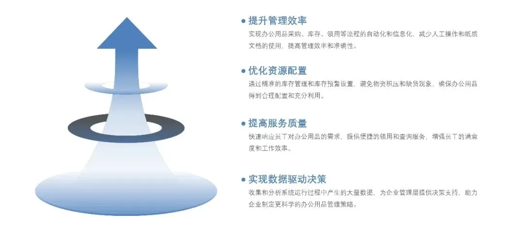 数字化转型已渗透企业运营的各个角落,办公用品管理作为后勤保障的关键部分,亟需通过技术手段优化流程、合理配置资源。高效的办公用品管理不仅能有效节省企业运营成本,还能提升整体运营效率,让企业将更多精力聚焦于核心业务,增强市场竞争力。系统简介