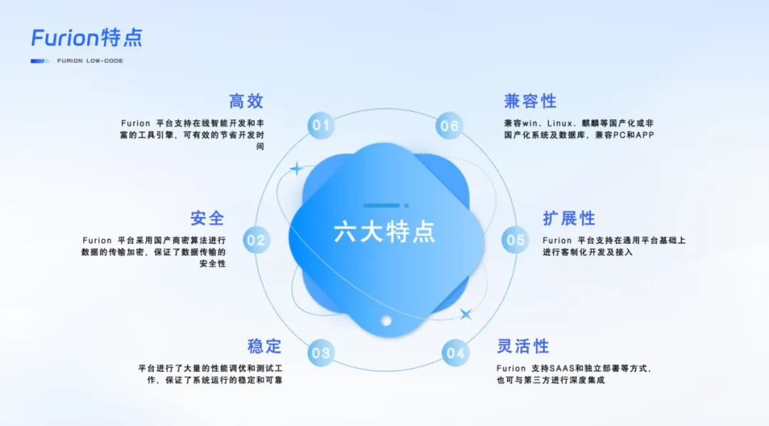 系统基于FURION低代码平台构建,该平台是一款高效的快速应用构建工具,内置RBAC权限系统,可精准控制不同角色操作权限;采用国产商密算法加密,保障数据安全;兼容Windows、Linux、麒麟等多操作系统,支持PC、APP等多终端访问,适配企业多样化部署需求。平台核心特点与优势