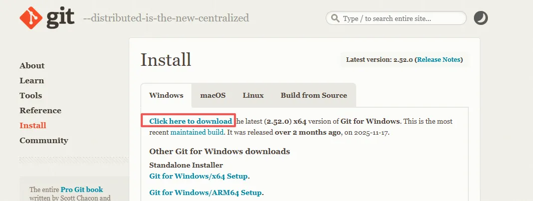 网址:https://git-scm.com/downloads