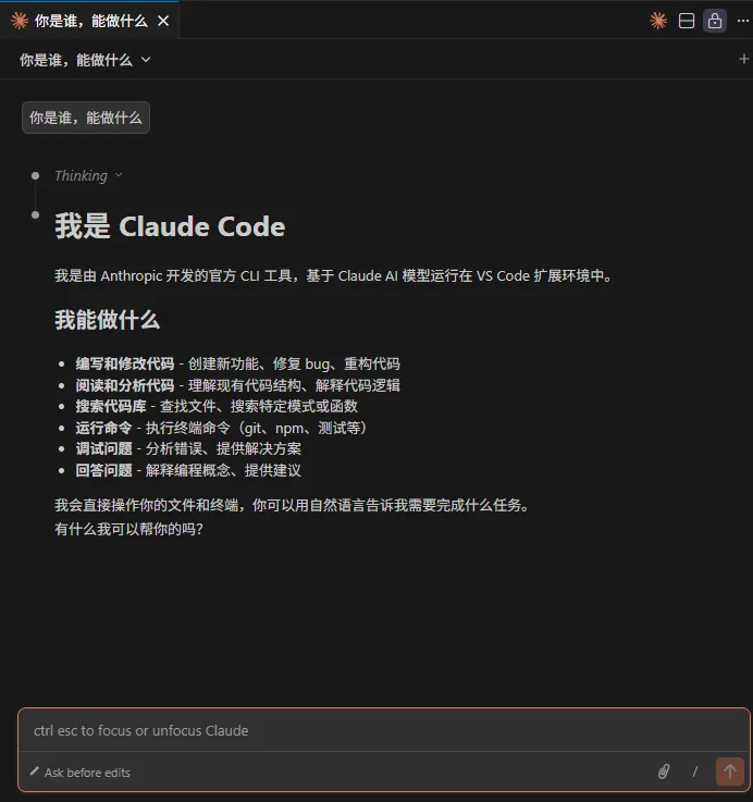 在编辑器或者命令行中,随意输入内容进行测试,若正常回复,那么恭喜你已配置成功,可以开始你的AI编程之旅。