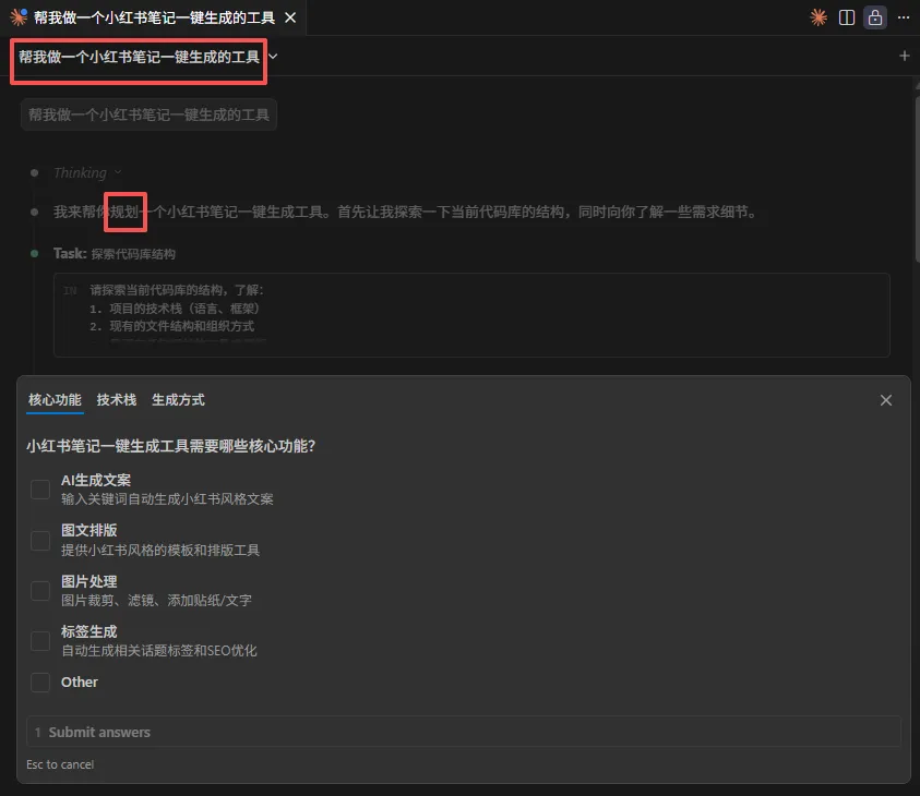 一般使用场景,在描述需求阶段,使用Plan mode模式,用户与CC进行交交互,确认需求,当确认清楚后,切换到其他模式进行AI自动编程,你就可以一边喝茶一边看着AI写代码了。