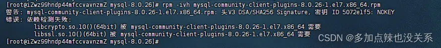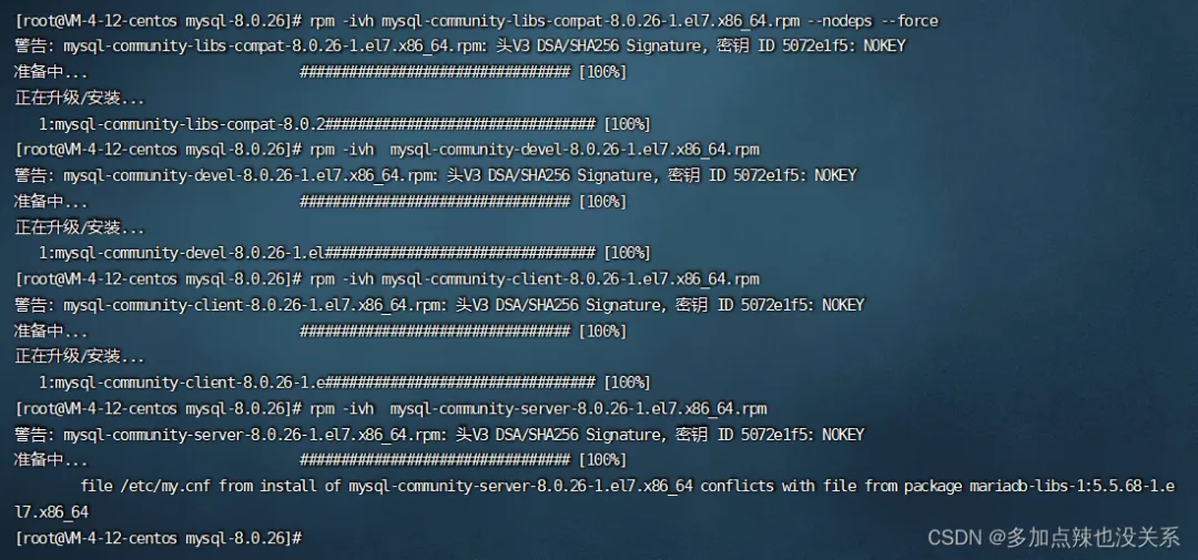 rpm -ivh mysql-community-common-8.0.26-1.el7.x86_64.rpm rpm -ivh mysql-community-client-plugins-8.0.26-1.el7.x86_64.rpm rpm -ivh mysql-community-libs-8.0.26-1.el7.x86_64.rpmrpm -ivh mysql-community-libs-compat-8.0.26-1.el7.x86_64.rpmrpm -ivh mysql-community-devel-8.0.26-1.el7.x86_64.rpmrpm -ivh mysql-community-client-8.0.26-1.el7.x86_64.rpmrpm -ivh mysql-community-server-8.0.26-1.el7.x86_64.rpm