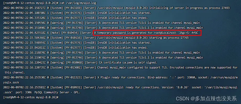 rpm安装 MySQL 会自动生成一个随机密码,可在 /var/log/mysqld.log 这个文件中查找该密码;