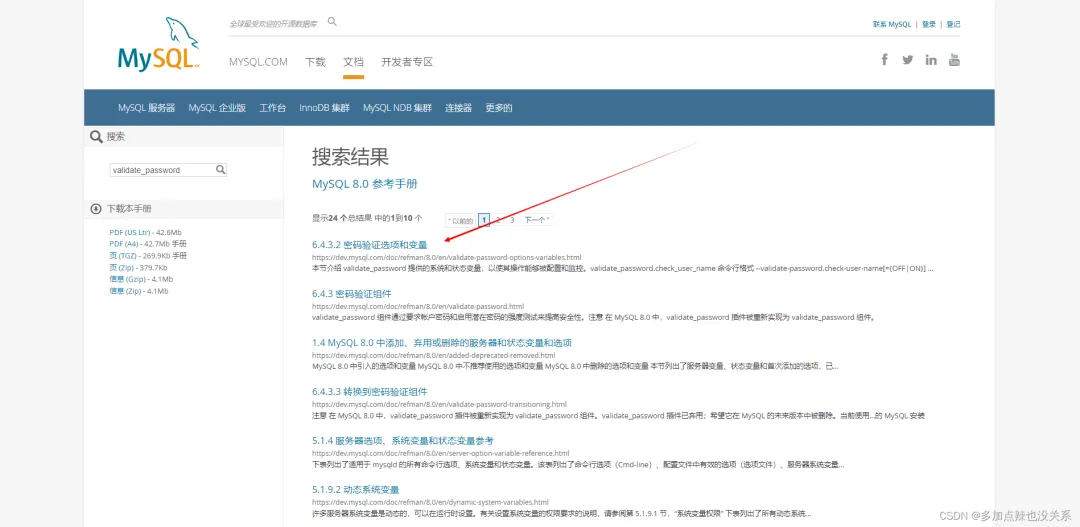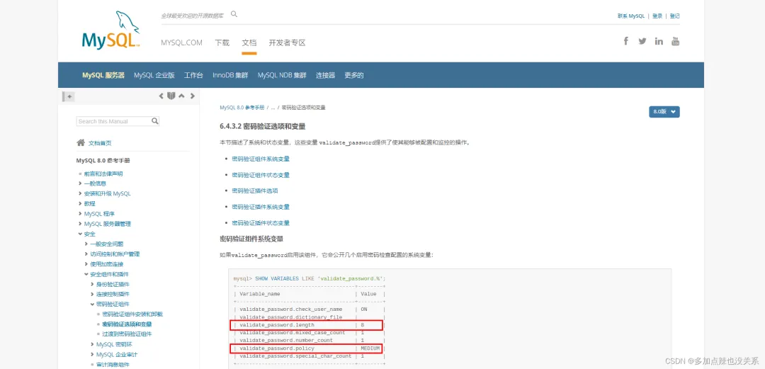 官网上能查到这个密码校验的规则,文档中搜索:validate_password