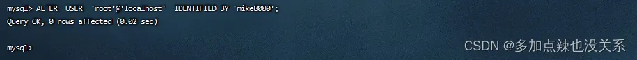 ALTERUSER'root'@'localhost'IDENTIFIEDBY'mike.8080';