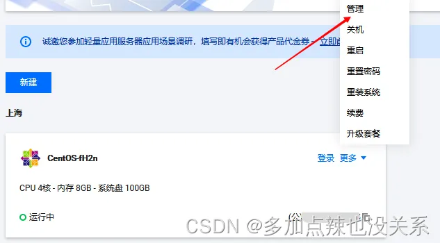 比方说我的 MySQL 是运行在 某某云 上面的,我就得做如下设置:找到我的服务器,点击 更多,选择 管理。