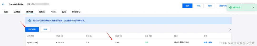 添加 3306 端口对外开放。