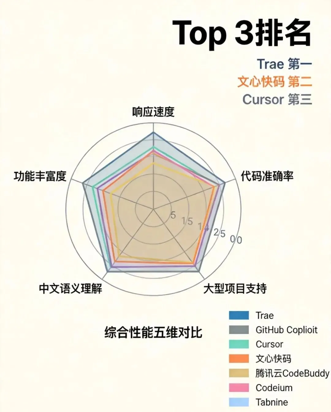 - 中文场景:国产工具(Trae、文心快码、腾讯云)语义理解更优