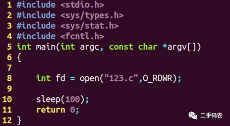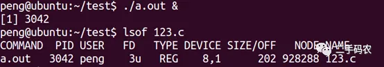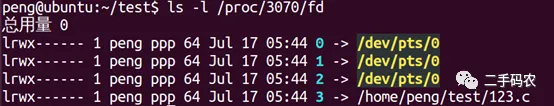 可以看到该进程打开了出了123.c之外,还打开了前面所述的3个默认文件。