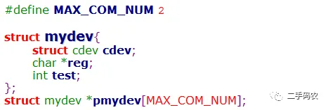 在大多情况下,我们会创建一个自定义的设备信息维护结构体,同时创建一个指针数组用来管理不同的设备。