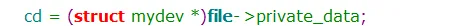 而read,write接口函数可以直接通过file的 private_data获取对应的pmycdev结构体变量。