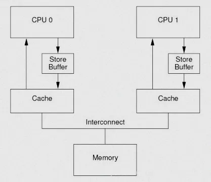 2. 仅允许“写-读”乱序(由写缓冲导致,比如前面核心A写a、写b,核心B读b、读a,可能读到b新值、a旧值);