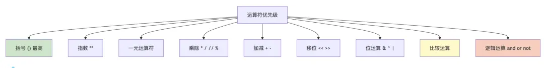 - 运算符分类:算术、比较、逻辑、位、赋值、成员、身份运算符