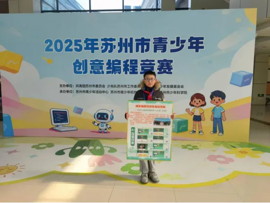 获奖感言:得知获苏州市青少年创意编程竞赛一等奖,我满心惊喜与激动。这份成绩源于对编程的热爱,从初识积木到编写程序,攻克 bug、琢磨算法的时光都让我倍感充实。更感谢老师的悉心指导,帮我从编程小白逐步成长。此次获奖是新起点,我会带着热爱继续在编程世界探索前行!