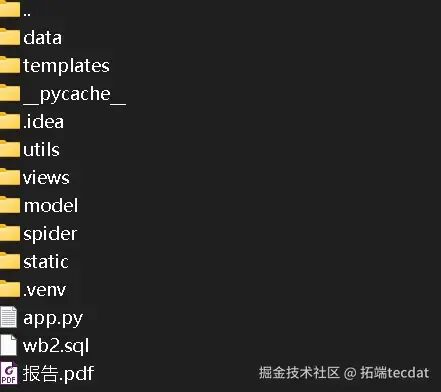 - MySQL:关系型数据库,用于存储采集的微博数据、用户数据,支持高效查询与持久化存储;