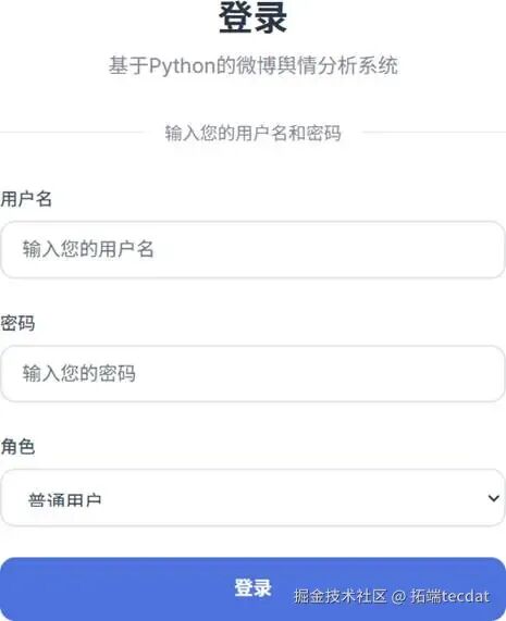 - 用户管理模块:实现用户注册、登录,管理员权限分级管理(普通用户仅可查看分析结果,管理员可管理数据与用户);