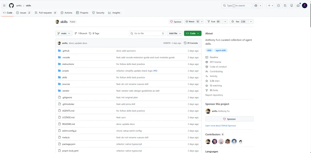 项目地址:github.com/antfu/skills