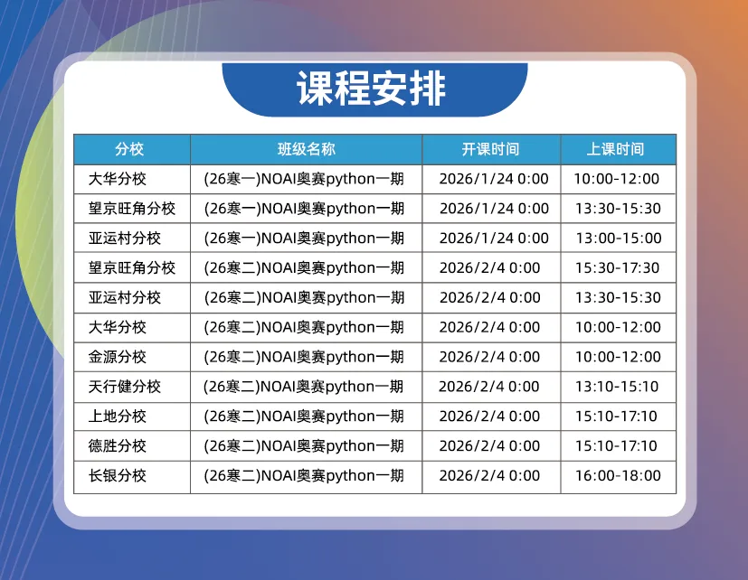 NOAI奥赛Python语言寒假课,零基础开启进阶之路!14次课Python启蒙,系统学习,双目标驱动,抢占人工智能奥赛制胜先机