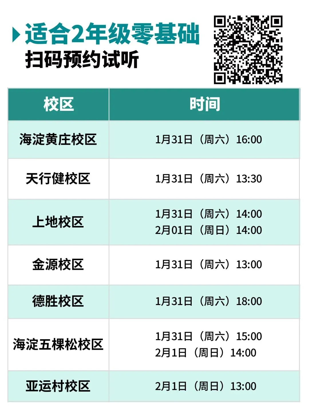 寒假课表