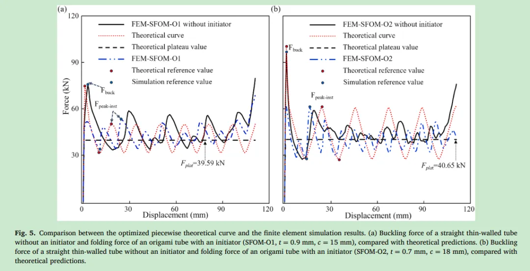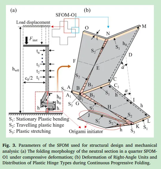 • 建立解析模型:基于塑性铰理论,推导了结构在顺序折叠阶段的平均力、瞬时峰值力以及在屈曲模式下的初始峰值力的计算公式。