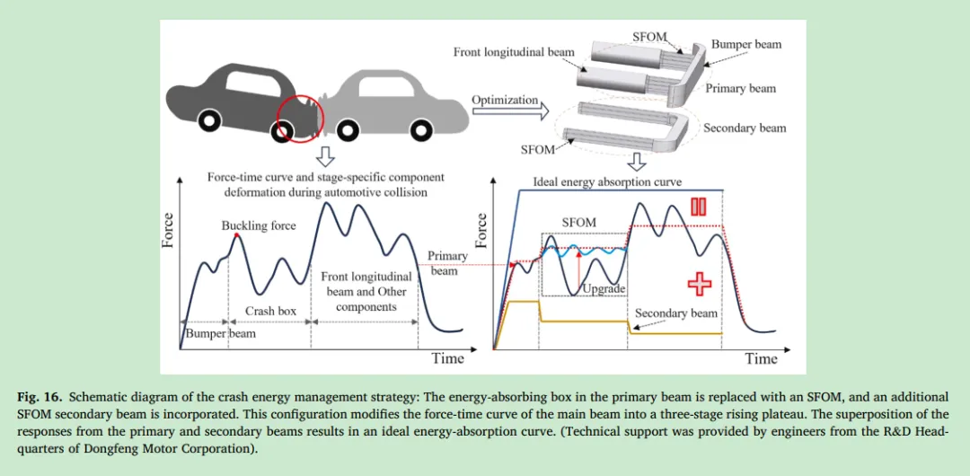 研究提出了一个概念性应用案例:在汽车碰撞吸能系统中,用SFOM替换传统吸能盒,并设计一个具有SFOM的副梁。