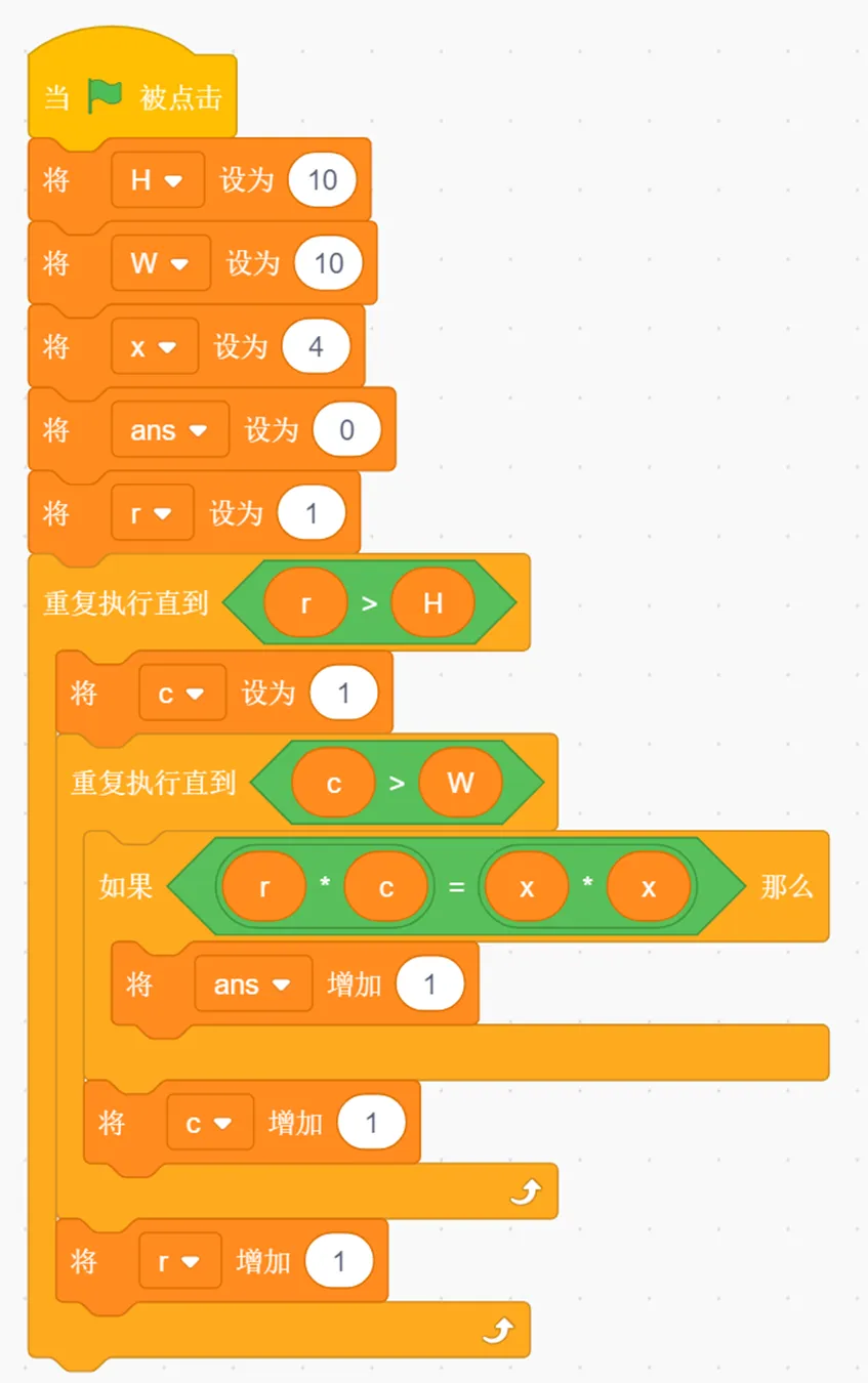 输入:H = 18,W = 18, x=12输出:ans = 5【测试用例5】