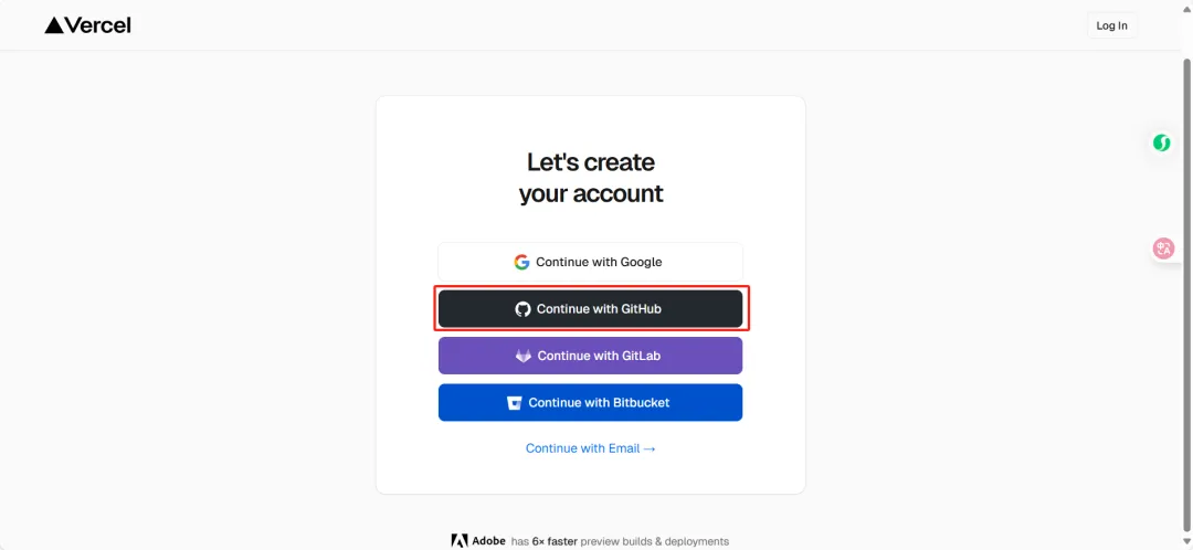 重点来了!一定要用 GitHub 账号登录 Vercel!