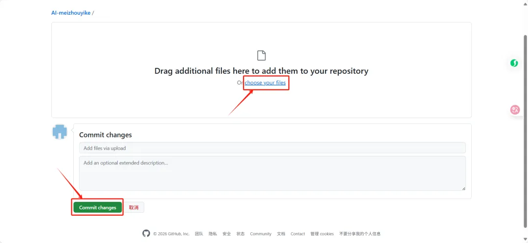 - 如果成功: 界面下方的进度条跑完,什么弹窗都没有,说明你刷新 GitHub 网页就能看到文件了。
