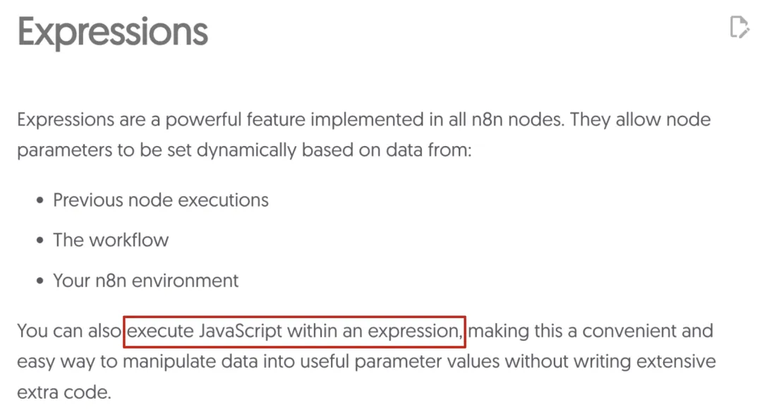 正如在官方 n8n 文档中所描述的,表达式是: